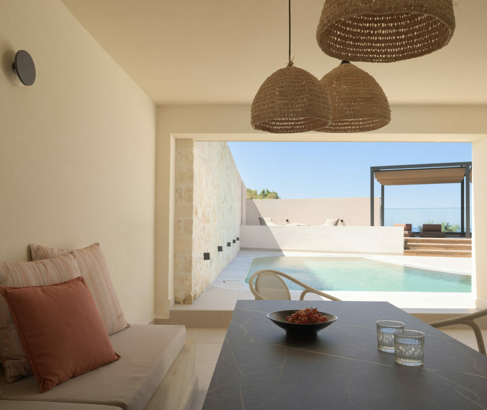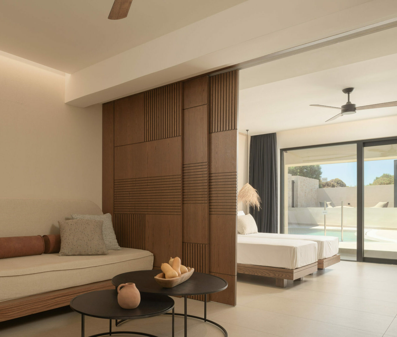 Η συνολική σύνθεση αποπνέει έναν σύγχρονο σχεδιασμό που γεφυρώνει την πολυτέλεια με τη φυσική απλότητα, προσφέροντας μια εμπειρία απόλυτα εναρμονισμένη με τον χαρακτήρα ενός πολυτελούς παραθαλάσσιου resort.