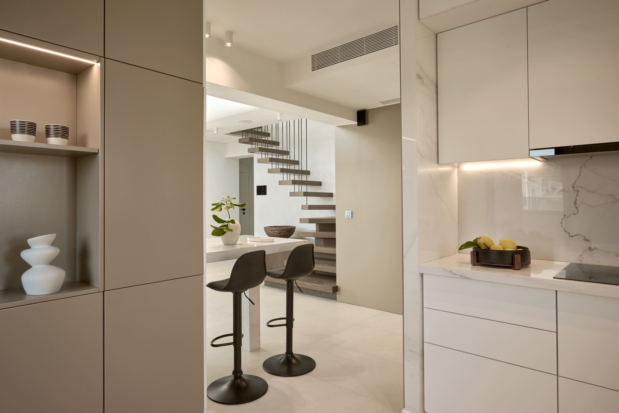 Tο συγκεκριμένο έργο εκφράζει μια σύγχρονη προσέγγιση στην αστική κατοικία, με τον αρχιτεκτονικό σχεδιασμό να στηρίζεται σε καθαρές γραμμές, ισορροπημένους όγκους και σαφή γεωμετρία, αναδεικνύοντας τη λειτουργικότητα και τη διαχρονική αισθητική του κτιρίου.